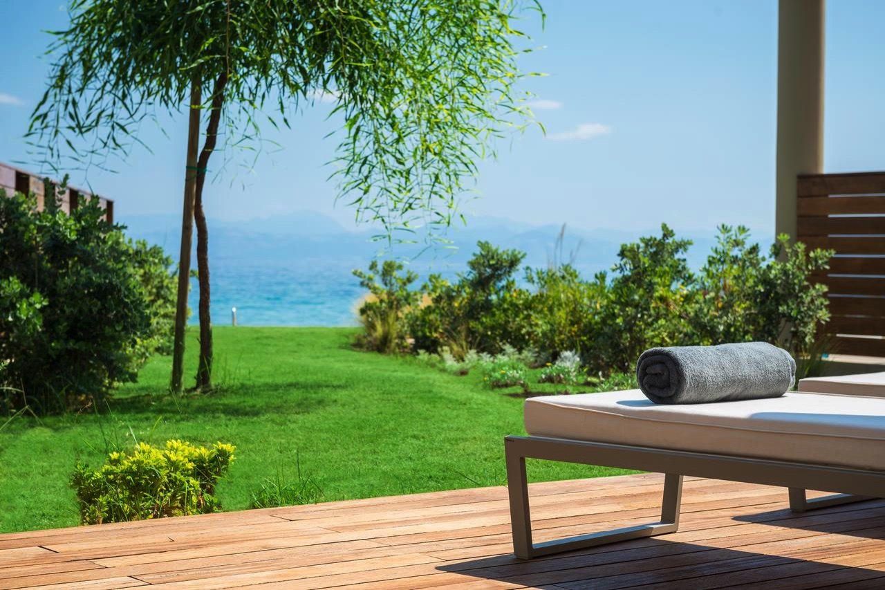 Steer clear from unnecessary noise and protect your privacy and peace in the adults-only luxury hotel of Domes Miramare located in the picturesque region of Moraitika, on the historic island of Corfu. This luxury hotel is where the past of the island meets the present through a successful fusion of timeless tradition and contemporary opulence. Completely attuned with its lusciously vegetated natural surroundings, Domes Miramare uses natural materials, earthy tones, and white marble, to honor Corfu’s heritage while providing its guests with all modern-day luxuries that will upgrade their stay.