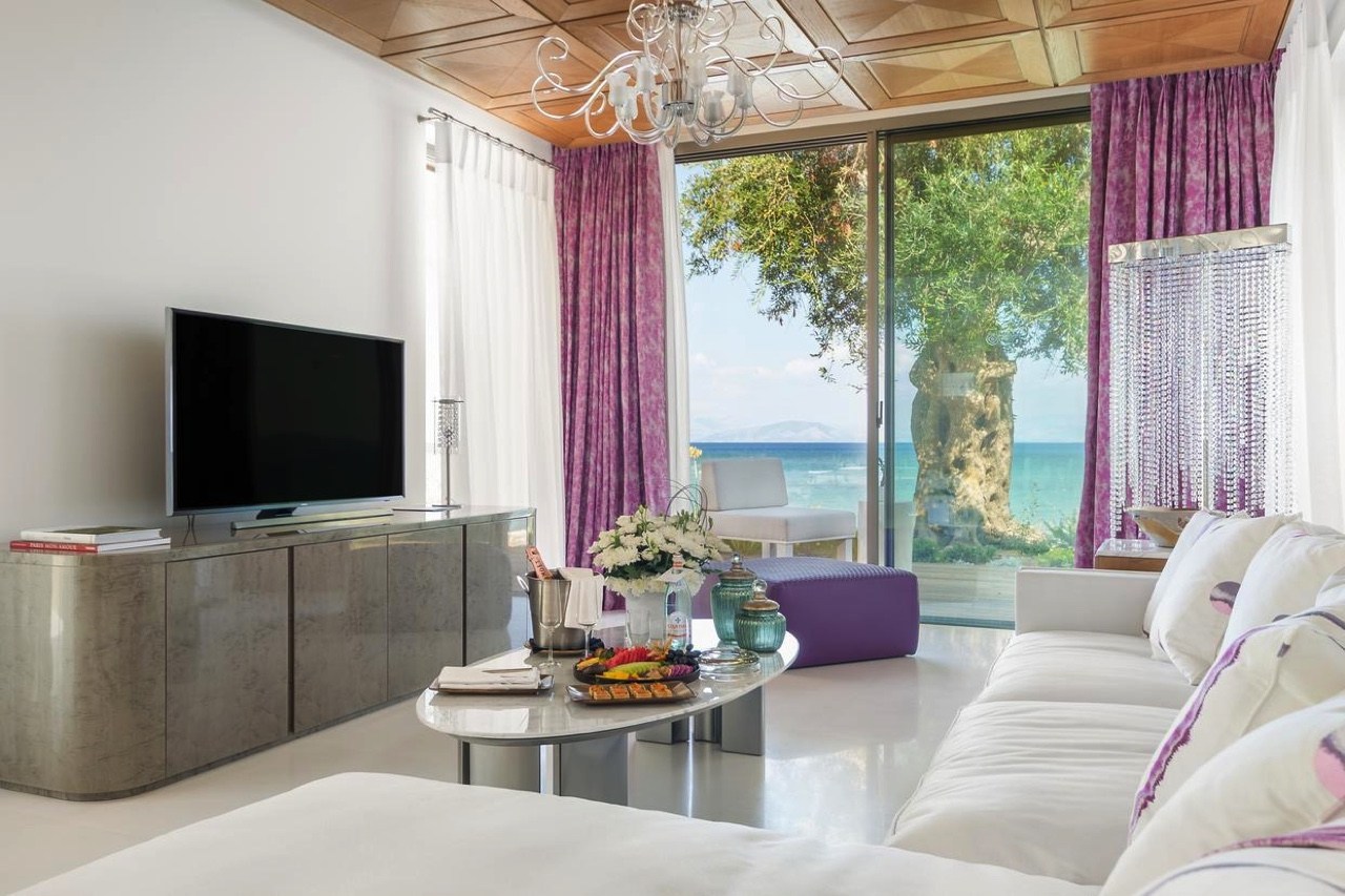 As the hotel is situated within only a 4-minute walk from Moraitika Beach, Domes Miramare allows for unobstructed sea views that can be enjoyed on its beautiful sun terrace. All of the rooms include a modern bathroom supplied with high-end toiletries. The Luxury Collection rooms also include a flat-screen TV and most often a cozy seating area. By choosing Domes Miramare, you’ll be giving yourself the chance to explore the culinary culture of Greece and Corfu in its exquisite restaurant, where trademark dishes of Greek cuisine are served in an elegant, gourmet setting.