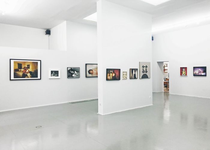 The gallery showcases a diverse range of works from both established and emerging Greek and international artists, featuring mediums such as painting, sculpture, photography, and mixed media.