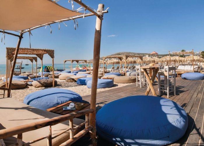 There you will find a beach bar right next to the beach that will check all your boxes, whether you want to lie down on a sunbed with a Greek coffee or beer at hand or have a light snack at one of their tables while gazing at the bright blue sea.