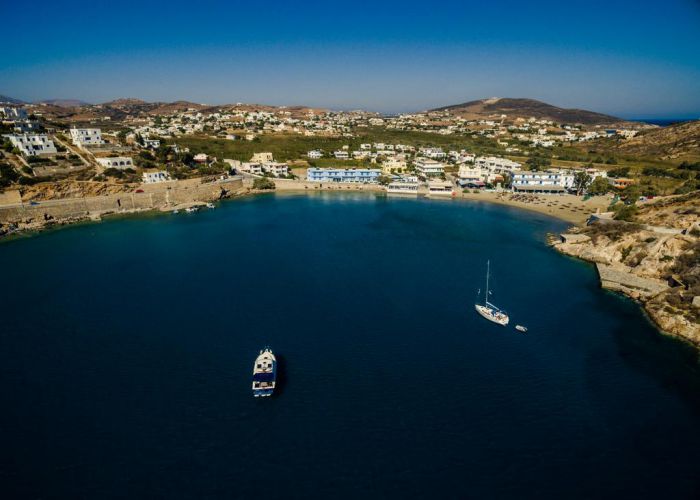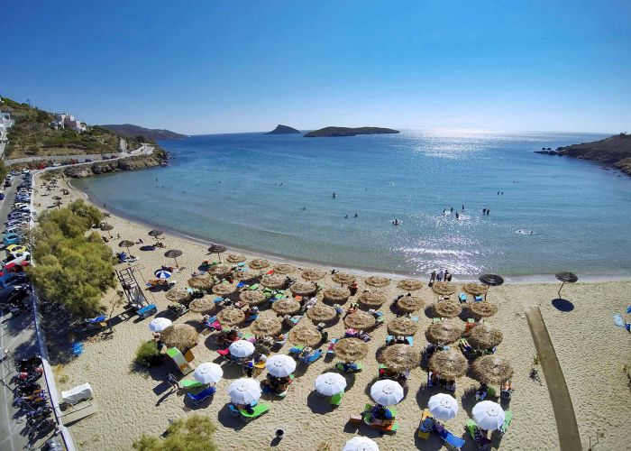 Opposite the beach, you can see Psathonisi, one of the uninhabited islands of Syros.