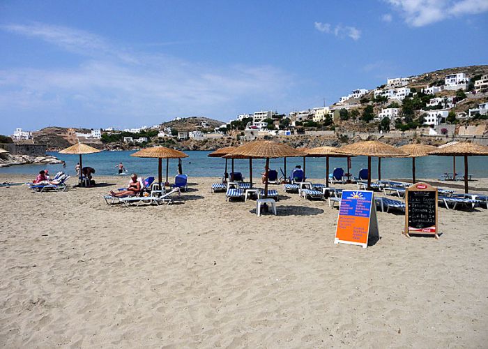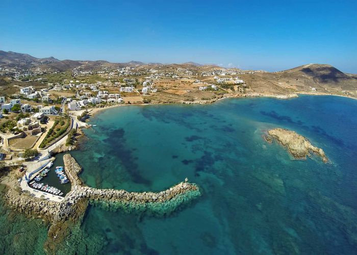 The wonderful beach with the fine sand and the natural shade from the tamarisk trees, the famous hill of Agia Pako with the picturesque church, the port with the boats, and the wonderful stone pier and the palm trees are of unique beauty.