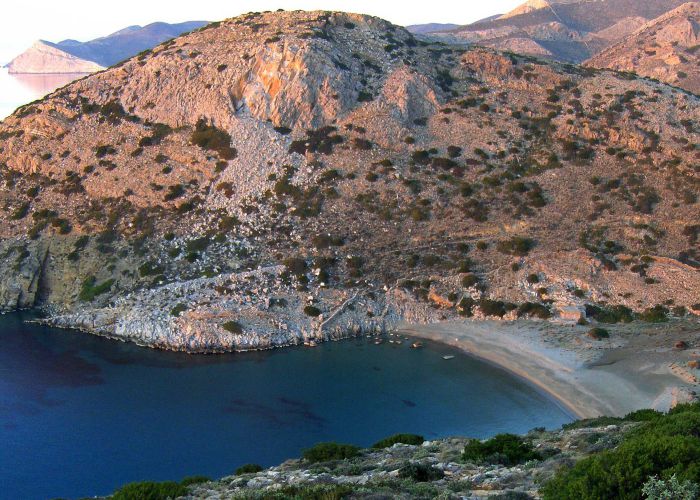 From high on the steep cliffs, the northern beaches magnetize the eye. They can only be accessed by boat from the bay of Kini during the summer months, resulting in them maintaining their pureness.