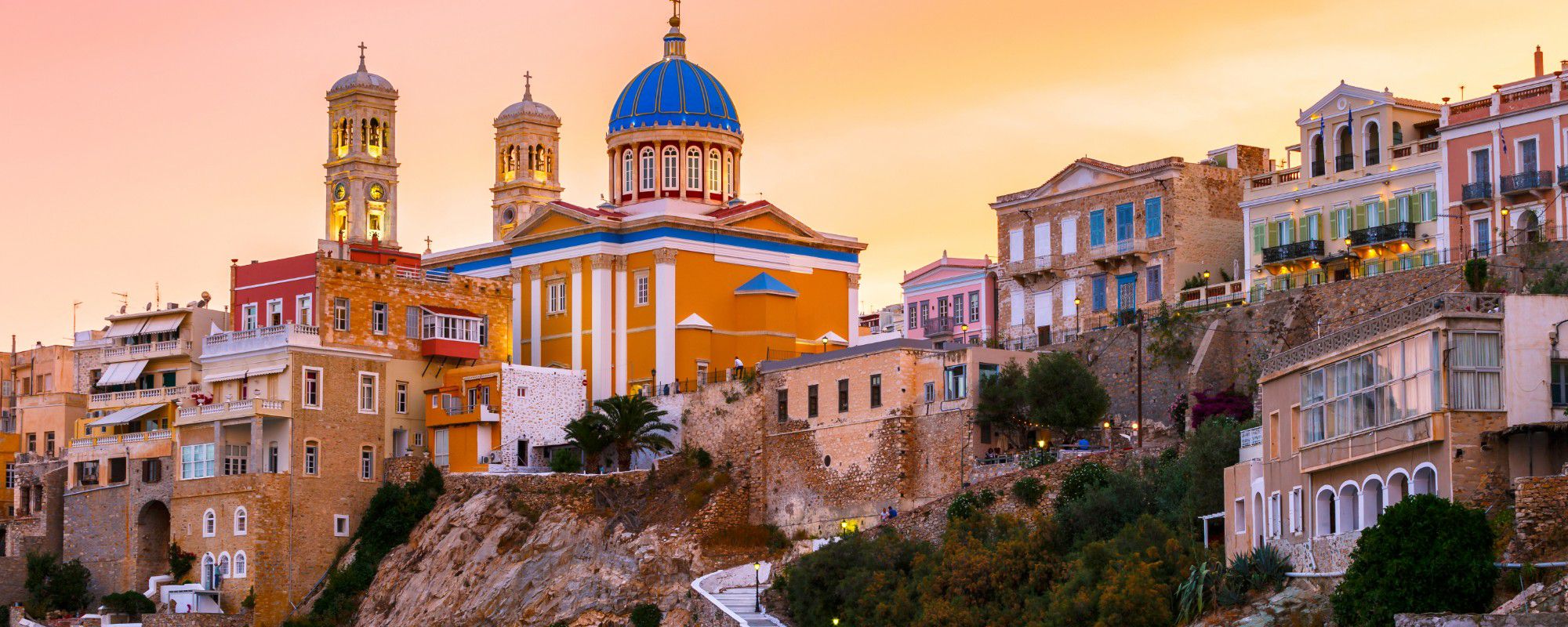 The city combines the trademark Cycladic architecture with 19th-century mansions and luxurious neoclassical buildings that used to host the shipowners of Syros.