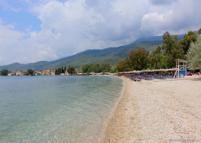 With golden sand and lush vegetation around, it attracts many travelers every summer. In the settlement, there are few accommodation and food options. Access is easy via an asphalt road from Argalasti.