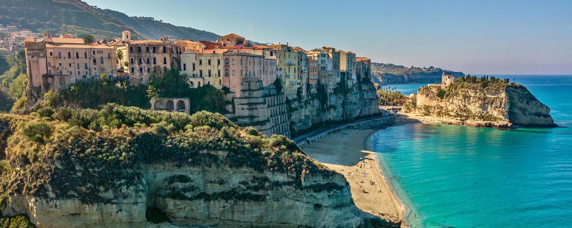 Tropea Beach, a jewel on the Tyrrhenian Sea, is known for its famous cliffs and crystal-clear waters.