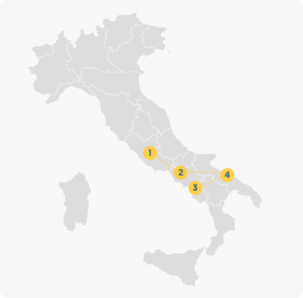 Are you and your partner dreaming of escaping to the heart of Italy? Embark on a romantic journey where you will witness the timeless beauty of Rome, Amalfi's breathtaking landscapes, Puglia's serenity, and the vibrant spirit of Naples.