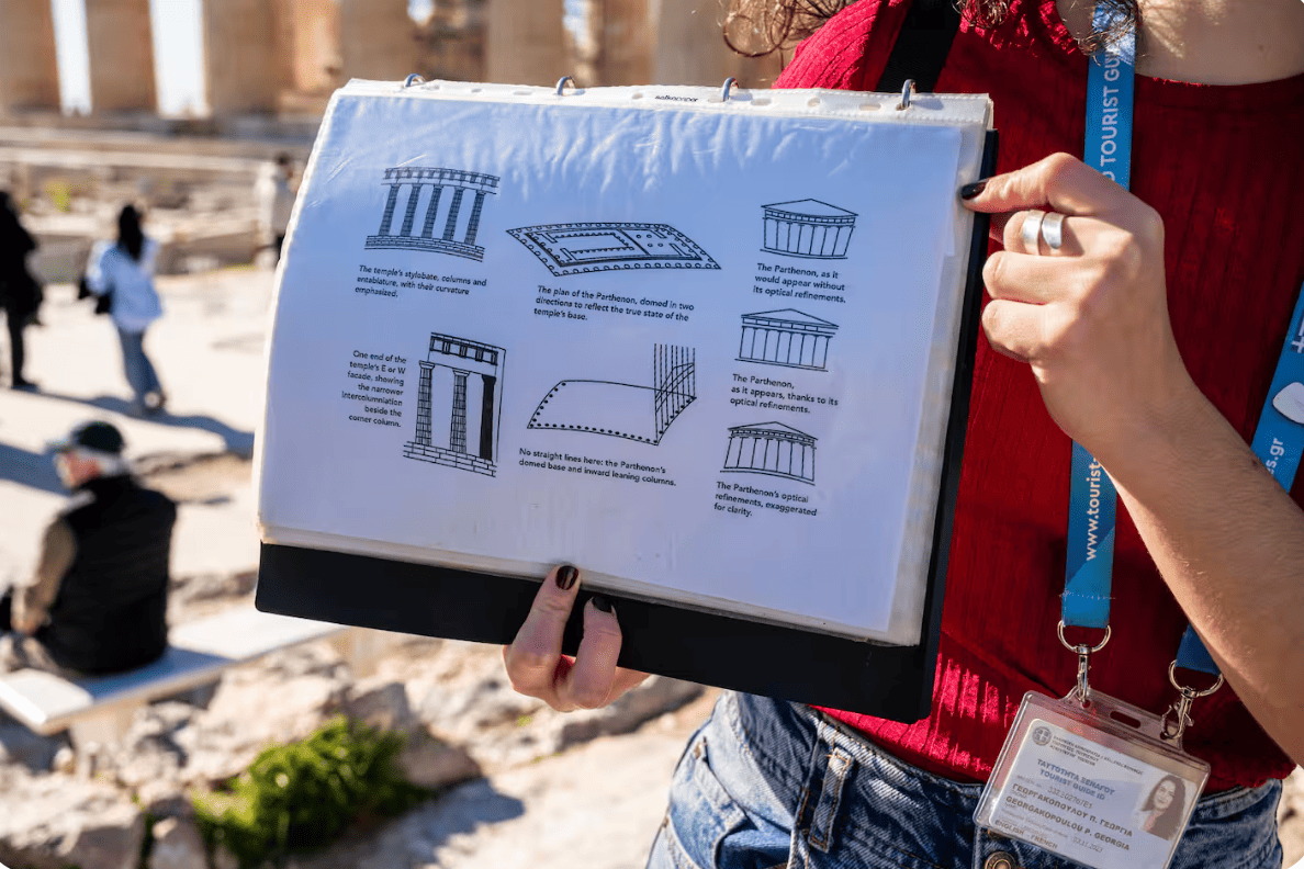 - This is a tour with a licensed expert guide: As we want to offer the best service to our guests, we have carefully selected expert licensed guides to ensure the best experience possible. Our team consists of a group of young professionals of high expertise in the fields of Archaeology, History or graduates of the official 'Greek State School of Tour Guides.' Hence, they are well-trained to share their knowledge with the public in an interesting and fun way. Their academic background works as a springboard immersing you into the wealth of Greek culture and holding your undivided attention for the whole duration of the tour. Despite the aforementioned assets, though, it is their enthusiastic character and passion for their field of study that unquestionably guarantees you a memorable tour experience.